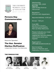 The University Womens Club in Vancouver is hosting an event on Wednesday October 15, at their beautiful home, Hycroft.